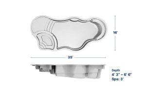 The striking focal point of the Axiom 16 is the huge underwater ledge, this pool is perfect for relaxing not only by the side of the pool but also relaxing inside the pool.