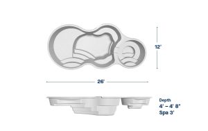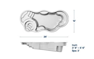 The Aruba is a free form shape, not following a particular structure, just offering a beautiful contoured shape with dimensional swells and dips for fun for the whole family