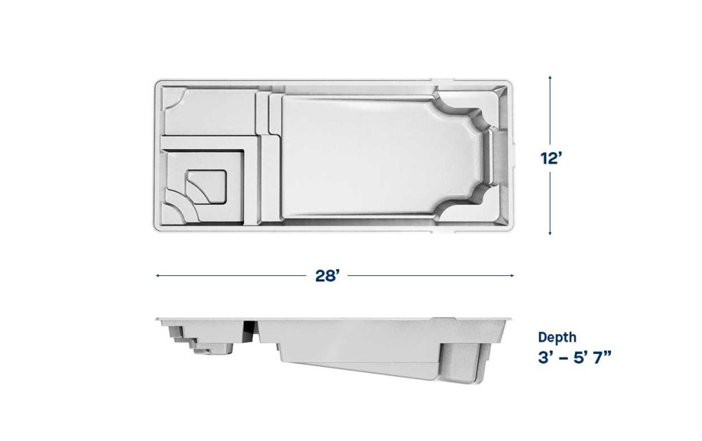When you are looking for a full body submersion or a great place for youngsters to splash and play, a fiberglass pool design with a nice wading area might be a feature you want to consider. Wading areas are similar to tanning ledges but offer more water depth. Water depth of a wading area can vary and is approximately 14”-18” of water.