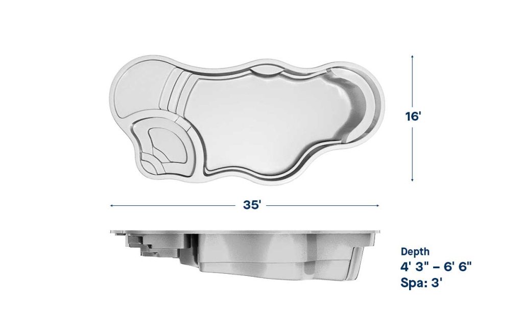 When you are looking for a full body submersion or a great place for youngsters to splash and play, a fiberglass pool design with a nice wading area might be a feature you want to consider. Wading areas are similar to tanning ledges but offer more water depth. Water depth of a wading area can vary and is approximately 14”-18” of water.